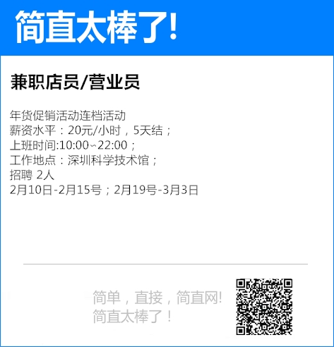 花店年花活动招聘 薪资水平:150元/天 , 周结 工作地点:南山 万象天地,花店年花招聘: 时间:2020年17号-24号 地点:万象天地或者湾厦地铁站 工作时间:10:00-22:00...