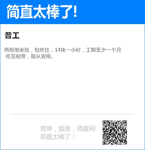 两班倒坐班,包吃住,14块一小时,工期至少一个月