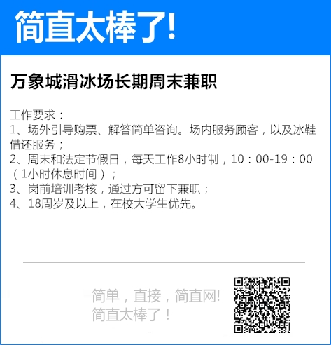 工作待遇:22.2元/小时(税前),交通及餐费自理,工作休息期间可享受免费滑冰