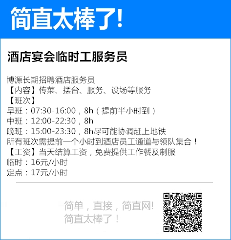 【报名】福田张三25岁175有健康证(短期/周末/长期)