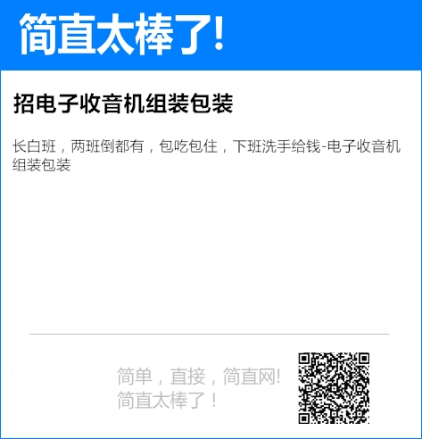 长白班,两班倒都有,包吃包住,下班洗手给钱-电子收音机组装包装